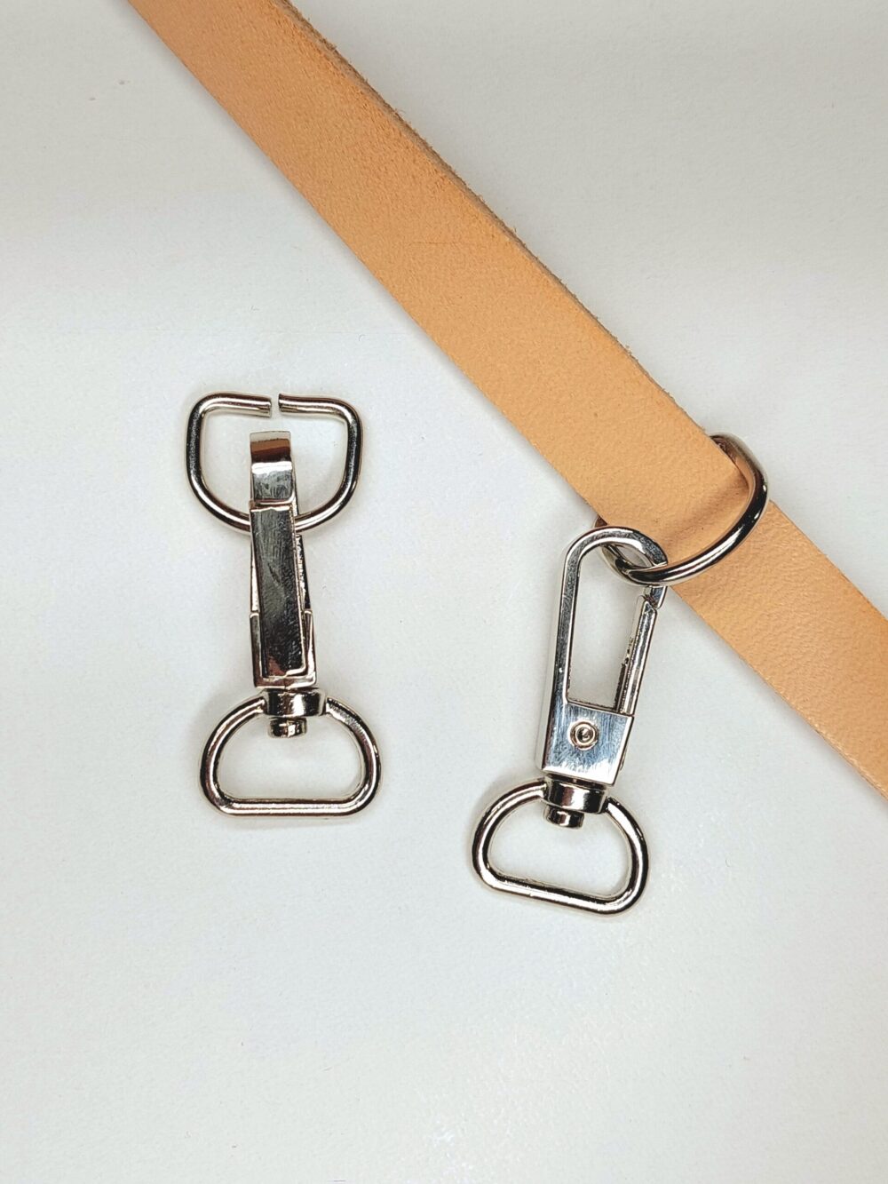 Paketti sisältää 2 kpl hopean väristä, 1,5 cm:n nauhaan sopivaa karbiinilukkoa ja D – lenkit.