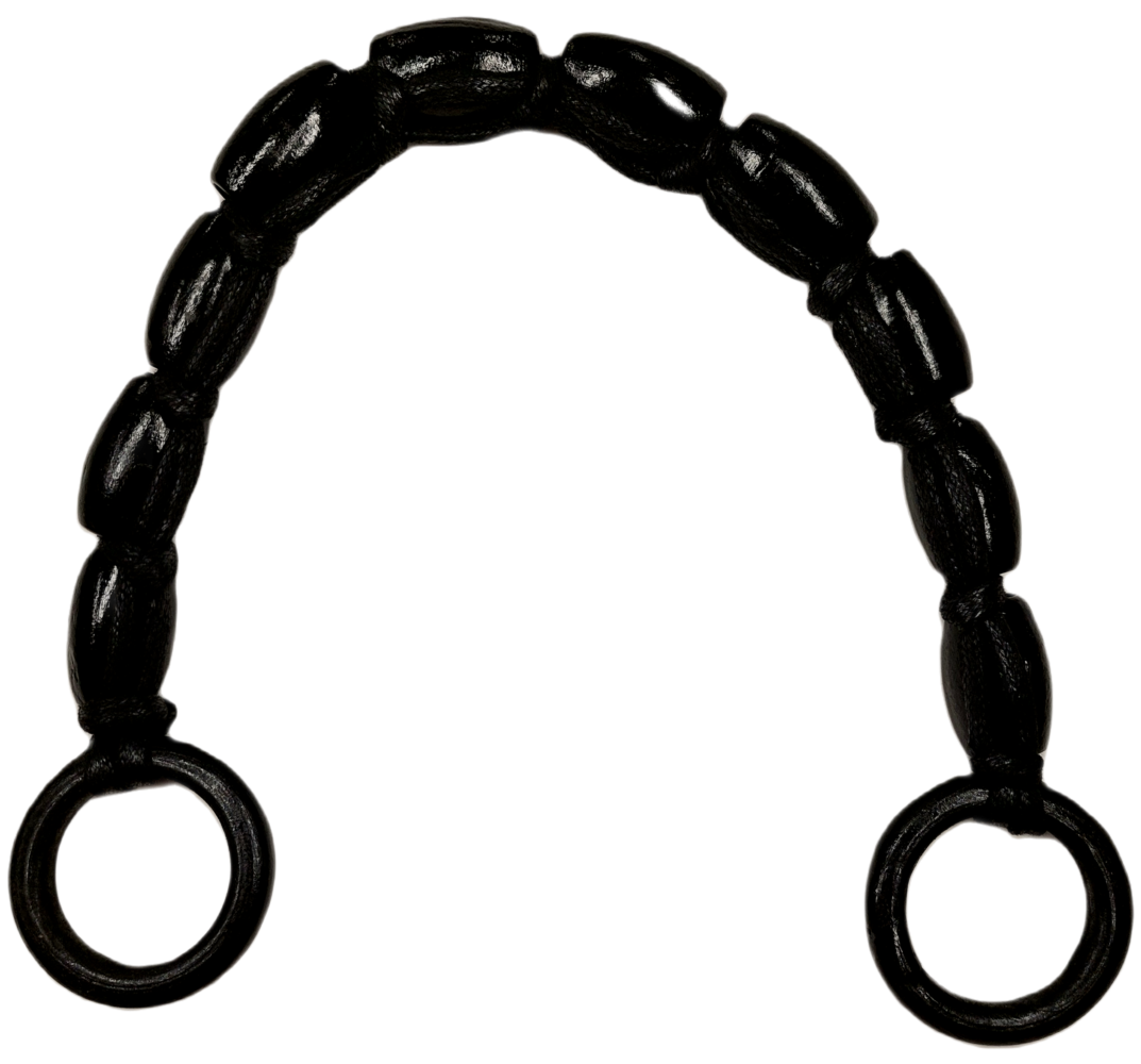 Kädensija on n. 1.5 cm vahvuinen. joten hyvä kädessä. Lakatut mustat puuhelmet ovat tyylikäs yksityiskohta yksinkertaisessakin kassissa. Huom. myydään kappaleittain