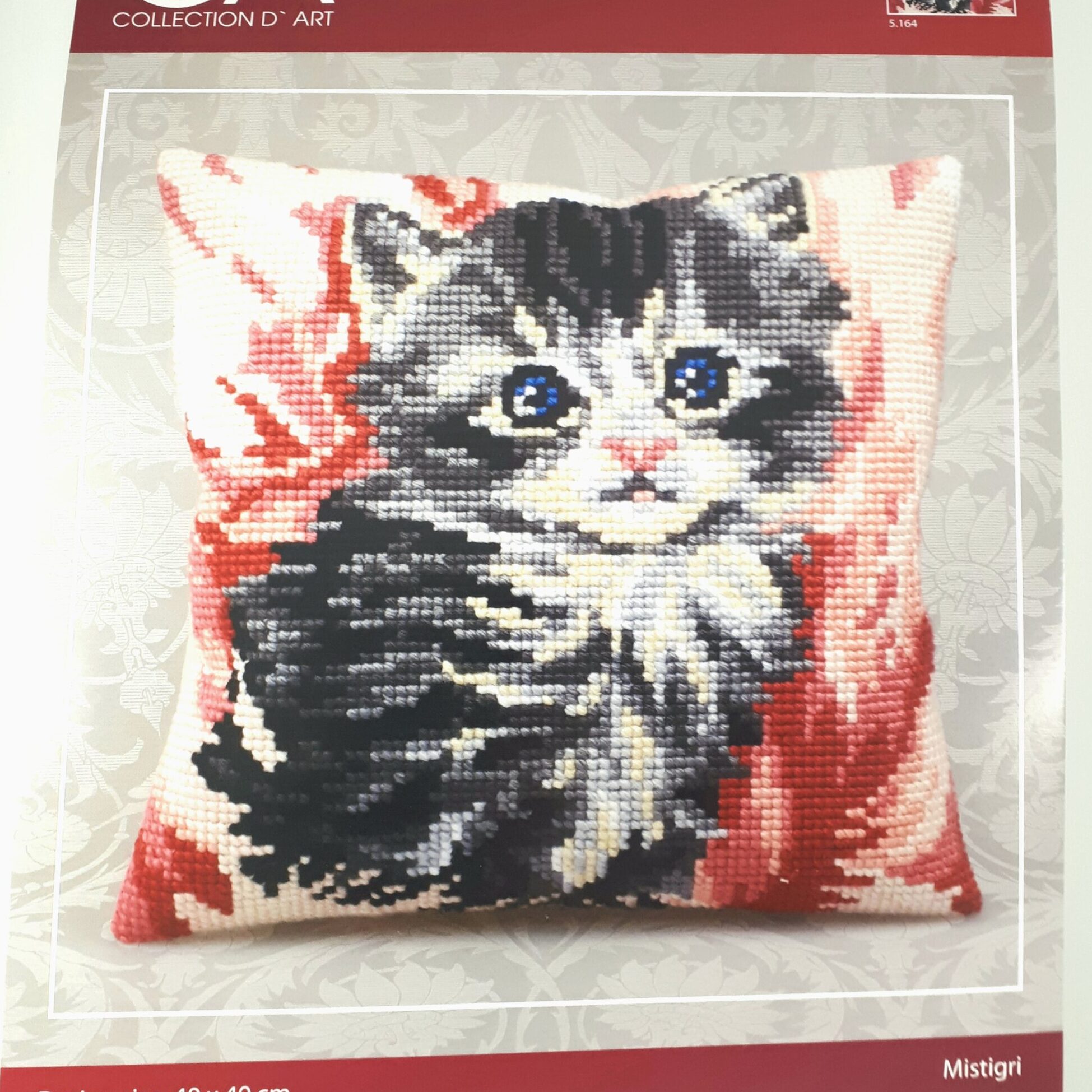 Pakkaus sisältää puuvillakankaan. jonne on kuva painettu värillisenä. langat ja neuleen. Työ tehdään ristipistona. taustakangas ei sisälly pakkaukseen. Valmiin työn koko on 40 x 40 cm