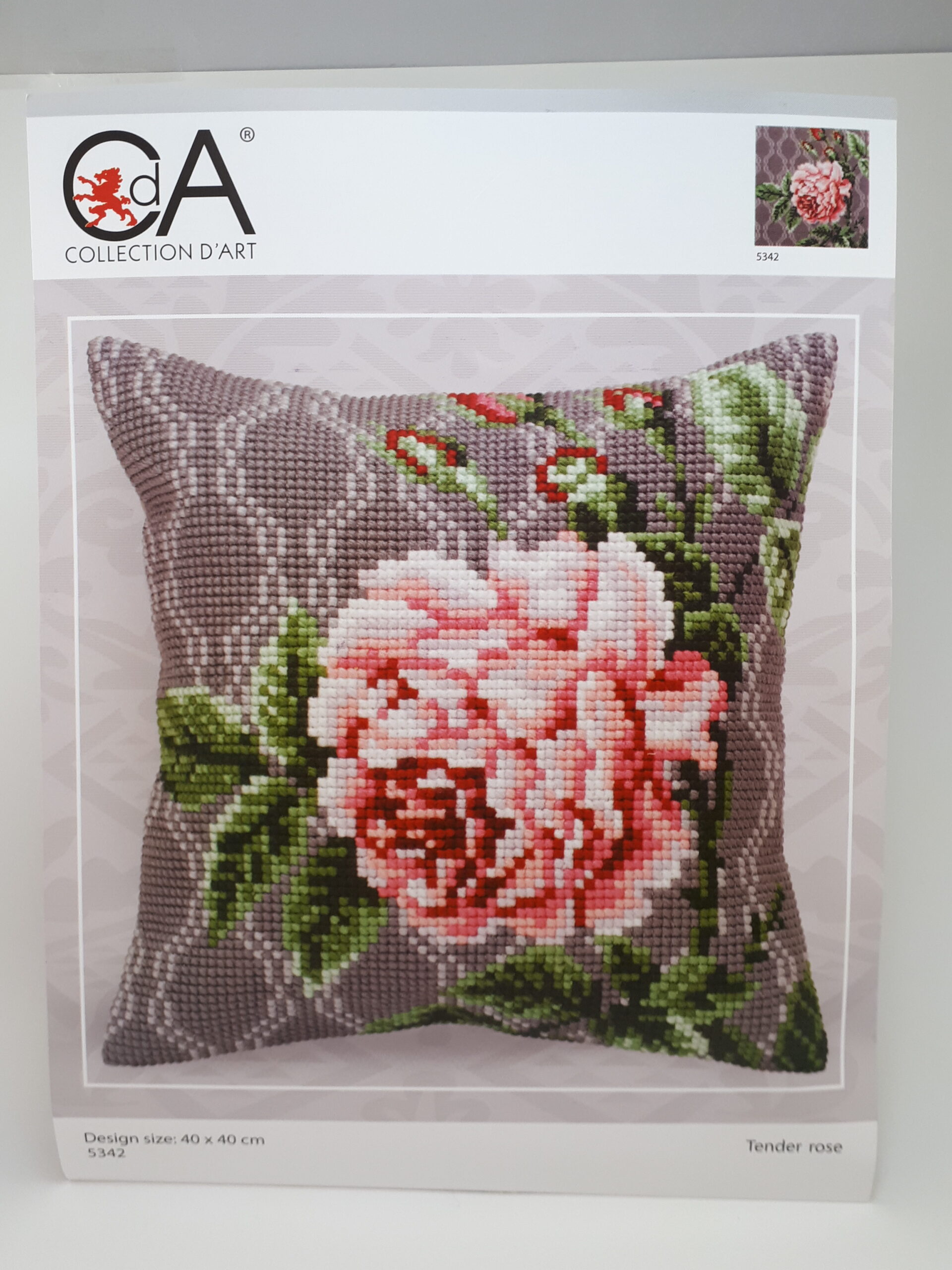 Ruusutyynypakkaus. valmiin työn koko 40 x 40 cm.